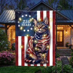 250 Years 1776 2026 Solar LED Flag Decor for Cat Lovers, Patriotic American Cat Garden Flag