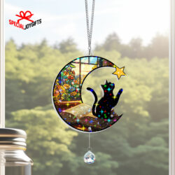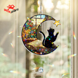 Black Cat Flowers Acrylic Window Hanging Sign MLN3947HS