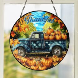 Fall Thanksgiving Pumpkins Stained Glass Suncatcher Fall for Jesus He Never Leaves MLN6280TMN