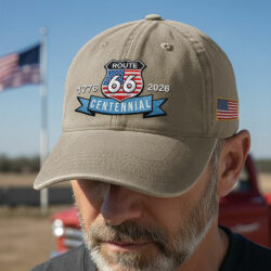 100 Years Route 66 The Mother Road 1926 2026 Patriotic Washed Cap with Embroidered American Flag
