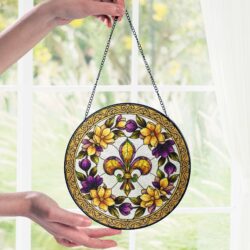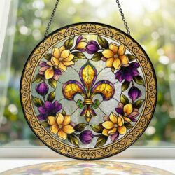 Mardi Gras Fleur de Lis Stained Glass Suncatcher, Louisiana Window Hanging