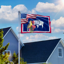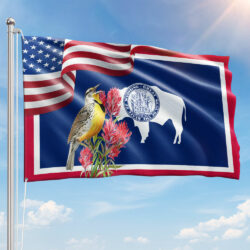 Wyoming Meadowlark Bird and Indian Paintbrush Flower Grommet Flag