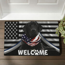 Patriotic Doormat, Welcome Black Labrador Retriever American Flag Doormat