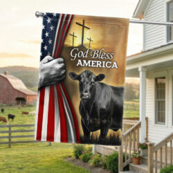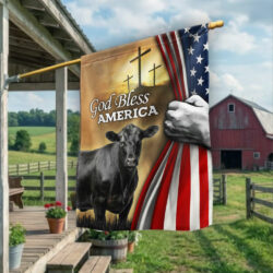 Patriotic Black Angus Cattle God Bless America Flag, Cow Farm Flag