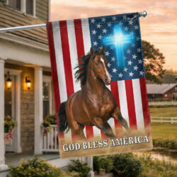 Patriotic Horse American Flag, God Bless Horse Farm Outdoor Flag