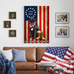 250 Years American Flag with Painting Patriotic Labrador Veteran Canvas Wall Art