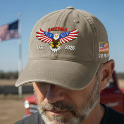 Patriotic 250 Years Washed Cap with Embroidered 1776 2026 American Flag
