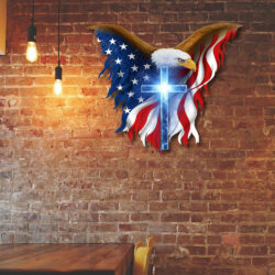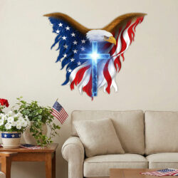 Patriotic Christian Eagle Cross Hanging Metal Sign, 250 Years Wall Art Decor