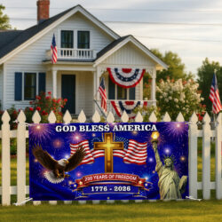 250 Years of Freedom Fence Banner, God Bless America Patriotic Outdoor flag