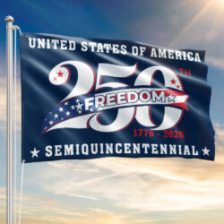 250 Years of Freedom American Flag, Patriotic Anniversary 1776 2026 Grommet Flag