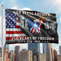 Patriotic Christian 250 Years of Freedom Flag, God Bless America 1776 2026 Grommet Flag
