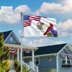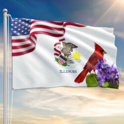 American Patriotic Illinois State Grommet Flag, Cardinal and Violet Flower Flag Decor