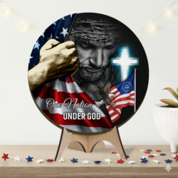One Nation Under God 250th Anniversary Betsy Ross Round Wooden Sign