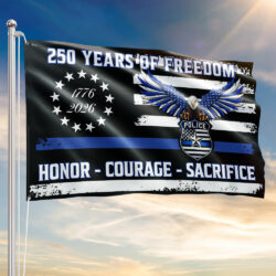 Police Thin Blue Line Flag, 250 Years of Freedom with Eagle Grommet Flag