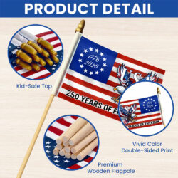 250 Years Of Freedom Flag, Bald Eagle Patriotic 1776–2026 Handheld Flag