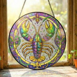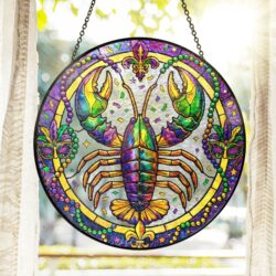 Mardi Gras Suncatcher, Crawfish Louisiana Stained Glass Window Hanging