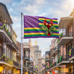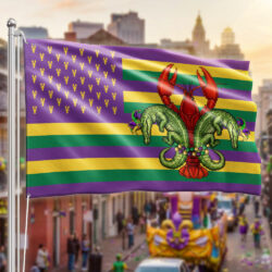 Louisiana Mardi Gras Flag, Alligator and Crawfish Grommet Flag