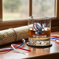 250 Years of Freedom American Printed Whiskey Glass for Patriotic Gift