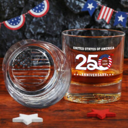 250th Anniversary 1776 2026 American Printed Whiskey Glass Patriotic Gift