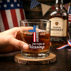 250 Years of Freedom, 1776 2026 Eagle Printed Whiskey Glass Patriotic Gift
