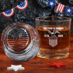 250 Years of Freedom Eagle Shield Engraved Whiskey Glass Patriotic Gift