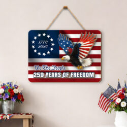 250 Years of Freedom Hanging Sign, Patriotic Eagle Hanging Wooden Sign