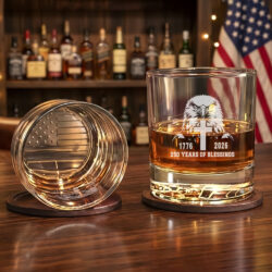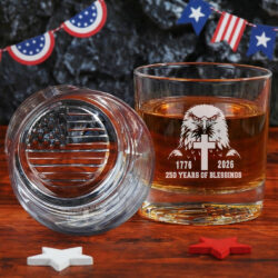 250 Years of Blessings Eagle Cross Engraved Whiskey Glass Patriotic Gift