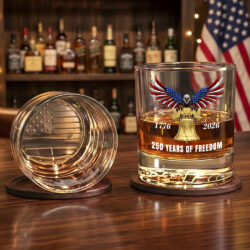 250 Years of Freedom Patriotic Eagle with Liberty Bell Printed Whiskey Glass