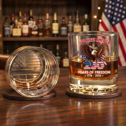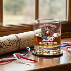 God Bless America 250 Years of Freedom Eagle Printed Whiskey Glass