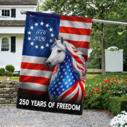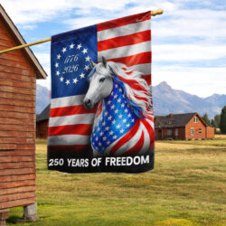 Horse Farmhouse Flag, 250 Years Strong Patriotic White Horse US Flag