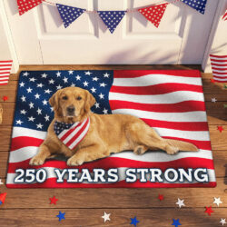 250 Years Strong Patriotic Golden Retriever American Flag Doormat