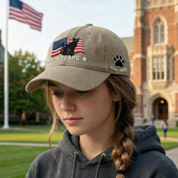 250th Anniversary Black Cat Washed Cap with Embroidered American Flag