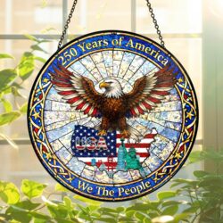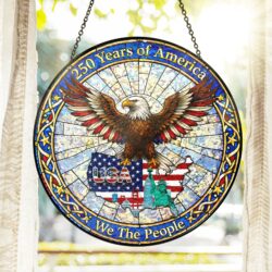 250 Years of America Patriotic Eagle Maps USA Stained Glass Suncatcher