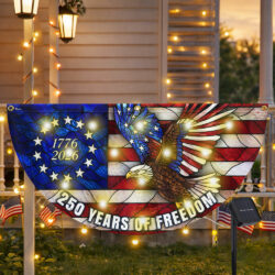 250 Years of Freedom Eagle Betsy Ross Stained Glass Solar Led Fan Flag