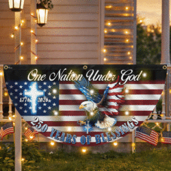 One Nation Under God 250 Years of Blessings Eagle Cross Solar Led Fan Flag