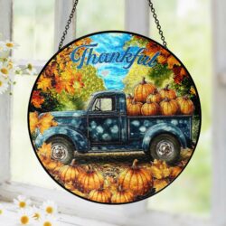 Fall Thanksgiving Pumpkins Stained Glass Suncatcher Fall for Jesus He Never Leaves MLN6280TMN