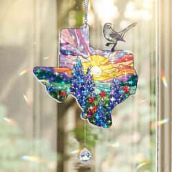 Texas with Northern Mockingbird and Bluebonnet, Texas Window Hanging Suncatcher TPT1246WH