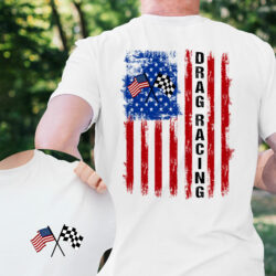 Patriotic Drag Racing Shirt, Race Car Driver with American Flag T-shirt