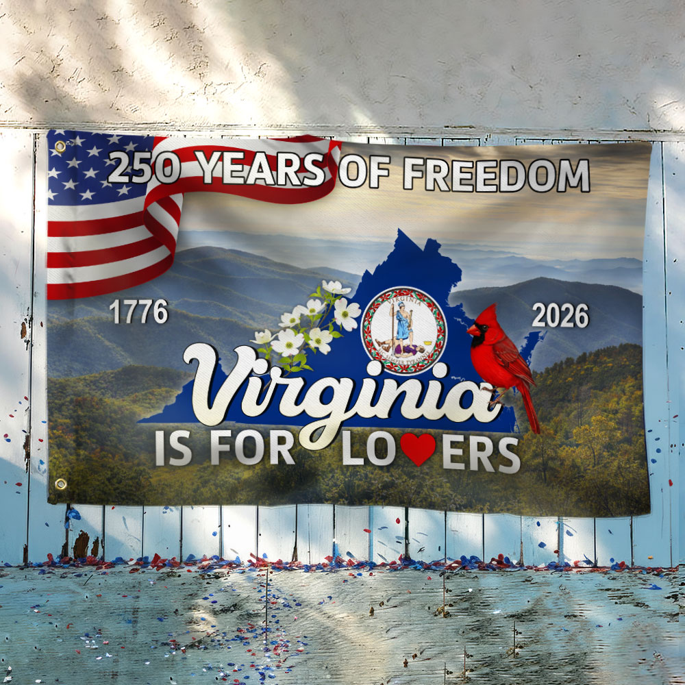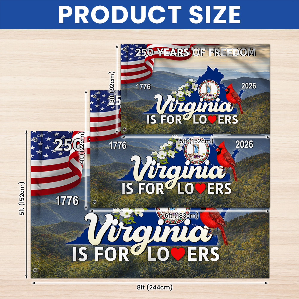 250 VA American 1776 2026 Grommet Flag, Virginia Is For Lovers Cardinal and Dogwood Flower Decor Flag