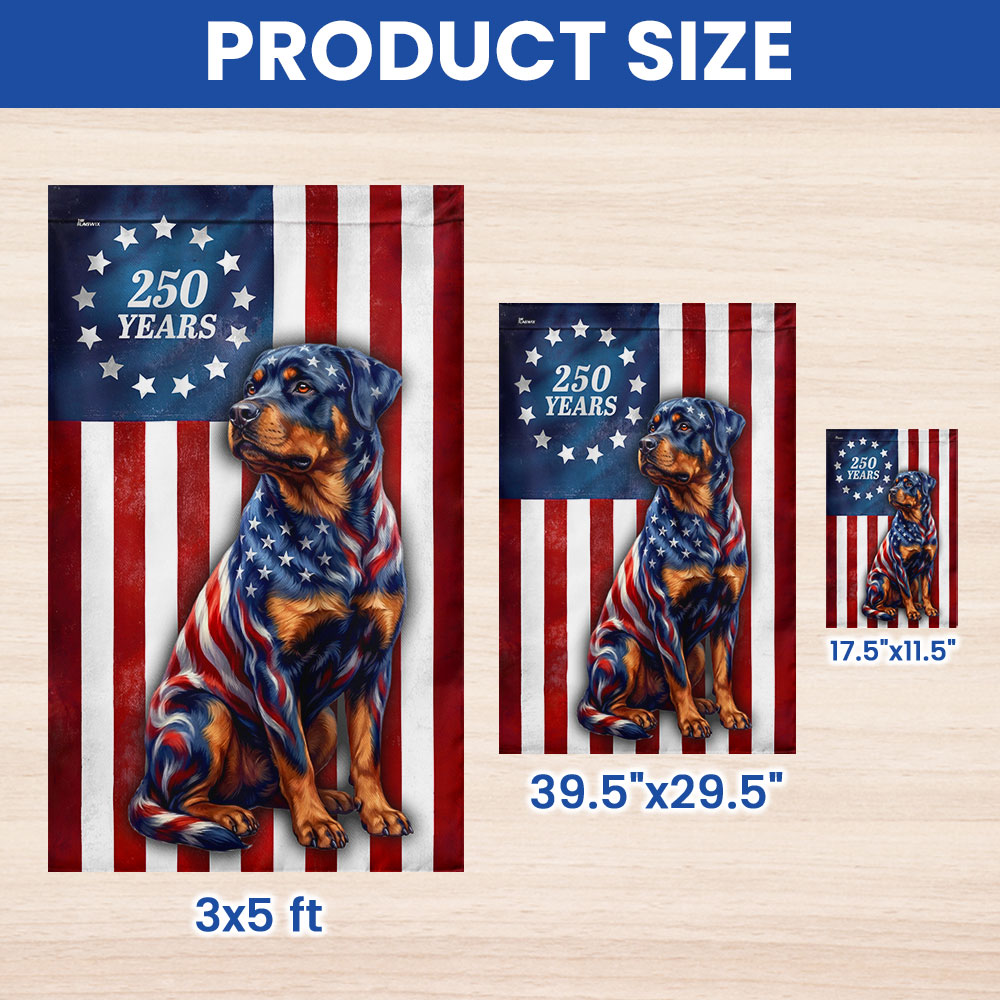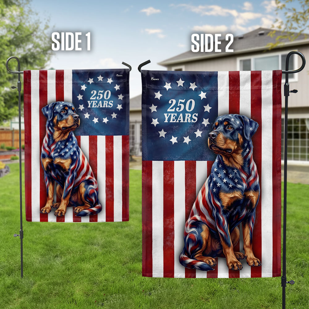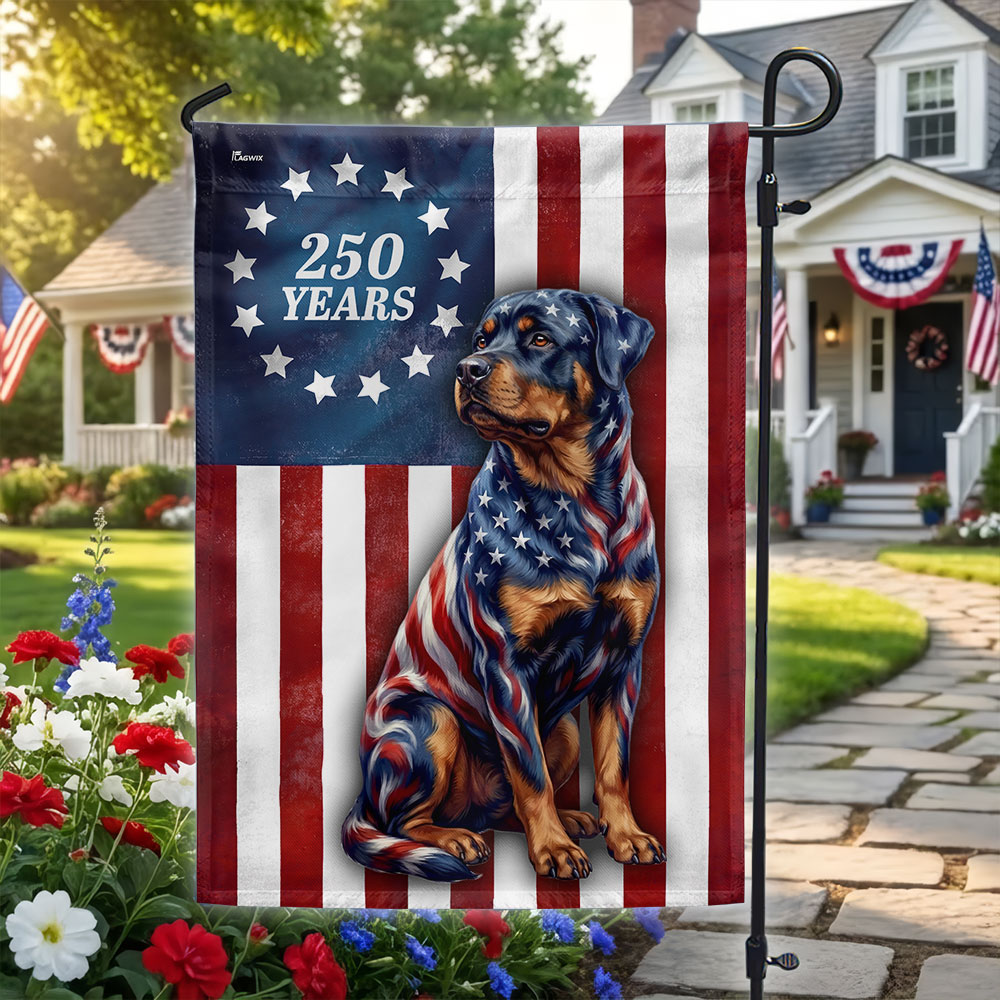 250 Years American Dog Garden Flag, Patriotic Rottweiler Betsy Ross Flag Decor