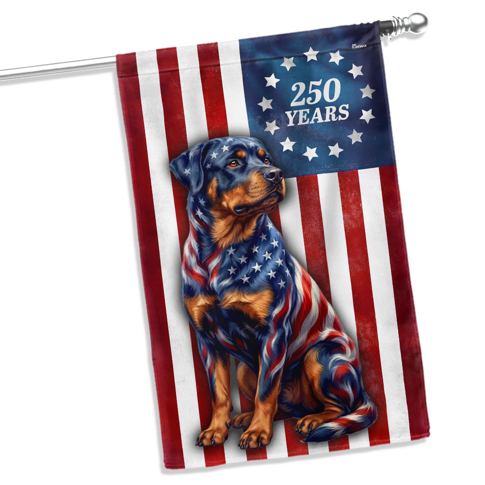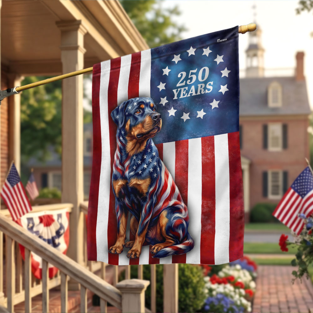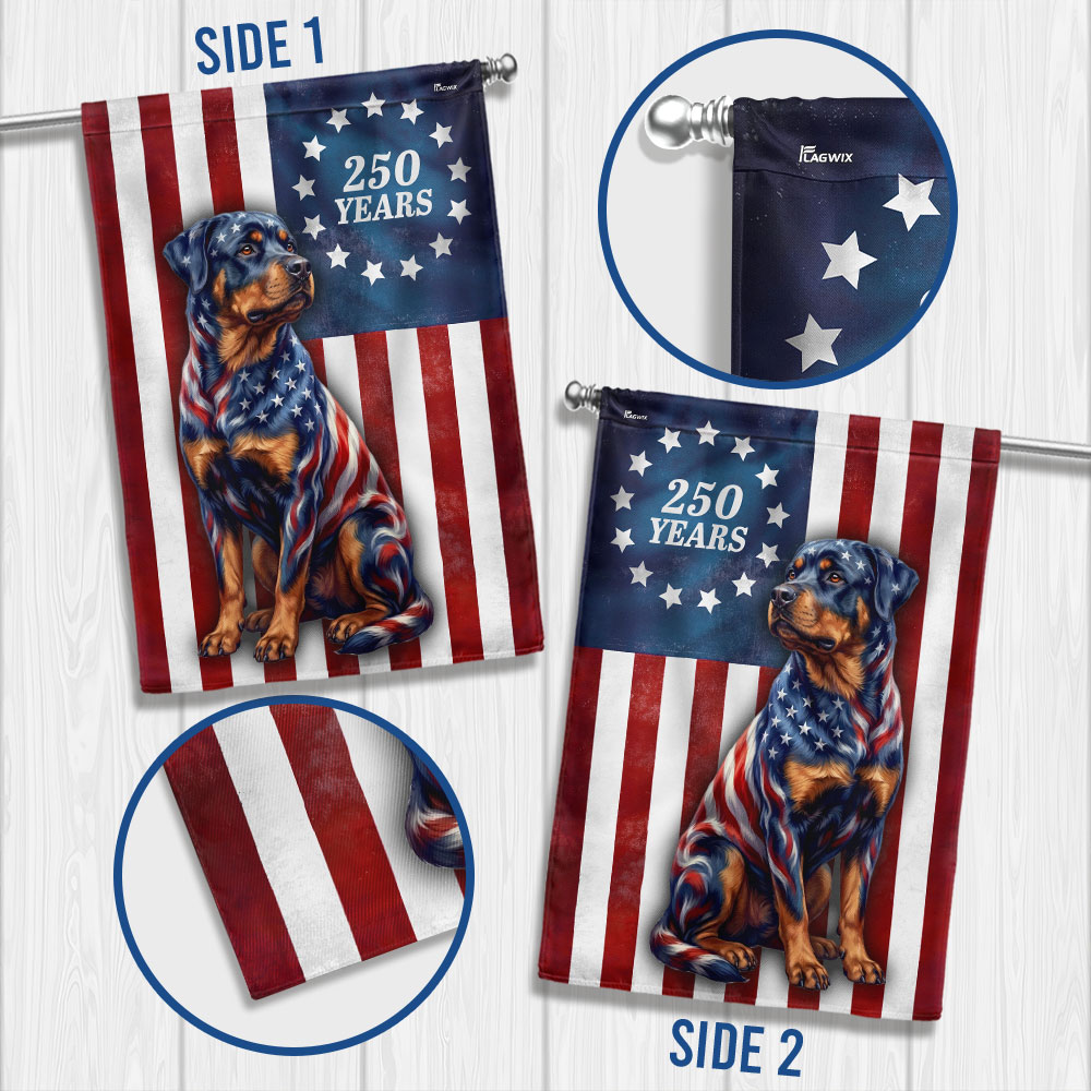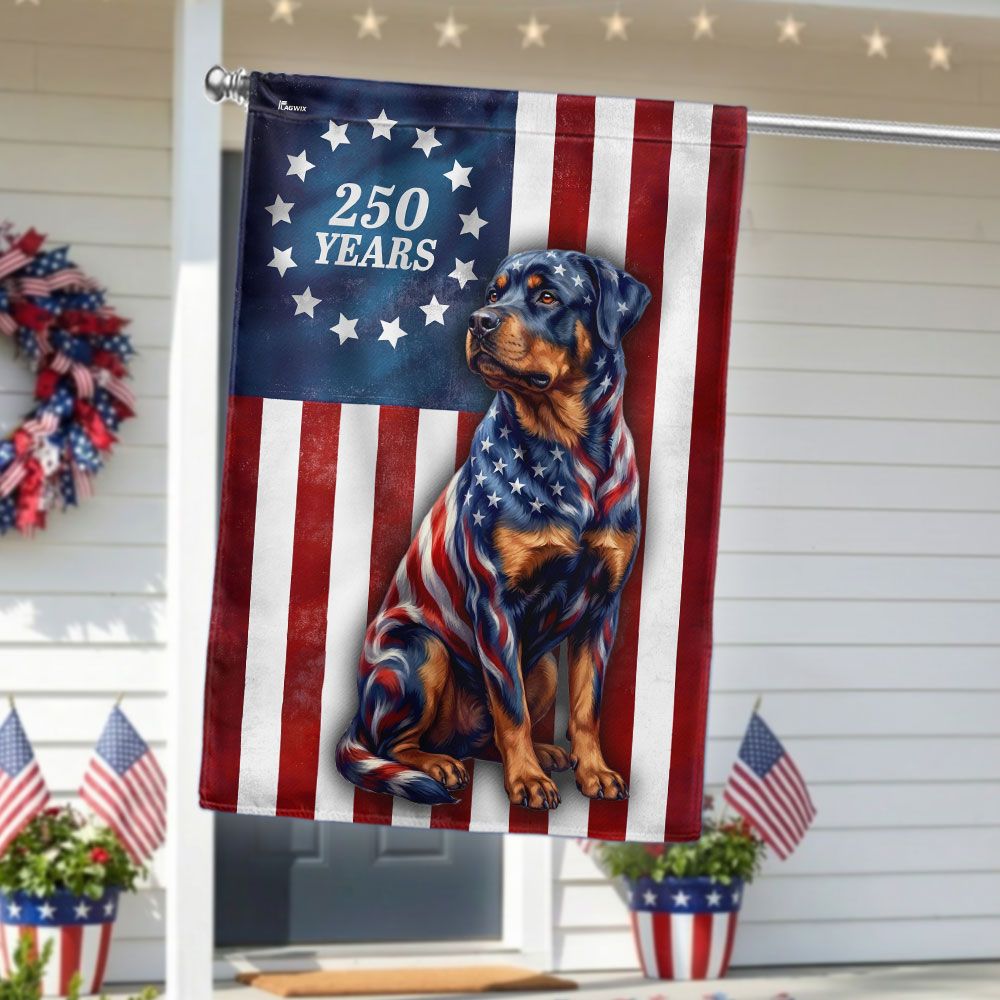 250 Years American Dog Garden Flag, Patriotic Rottweiler Betsy Ross Flag Decor