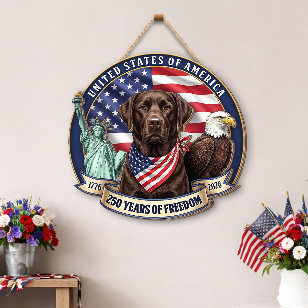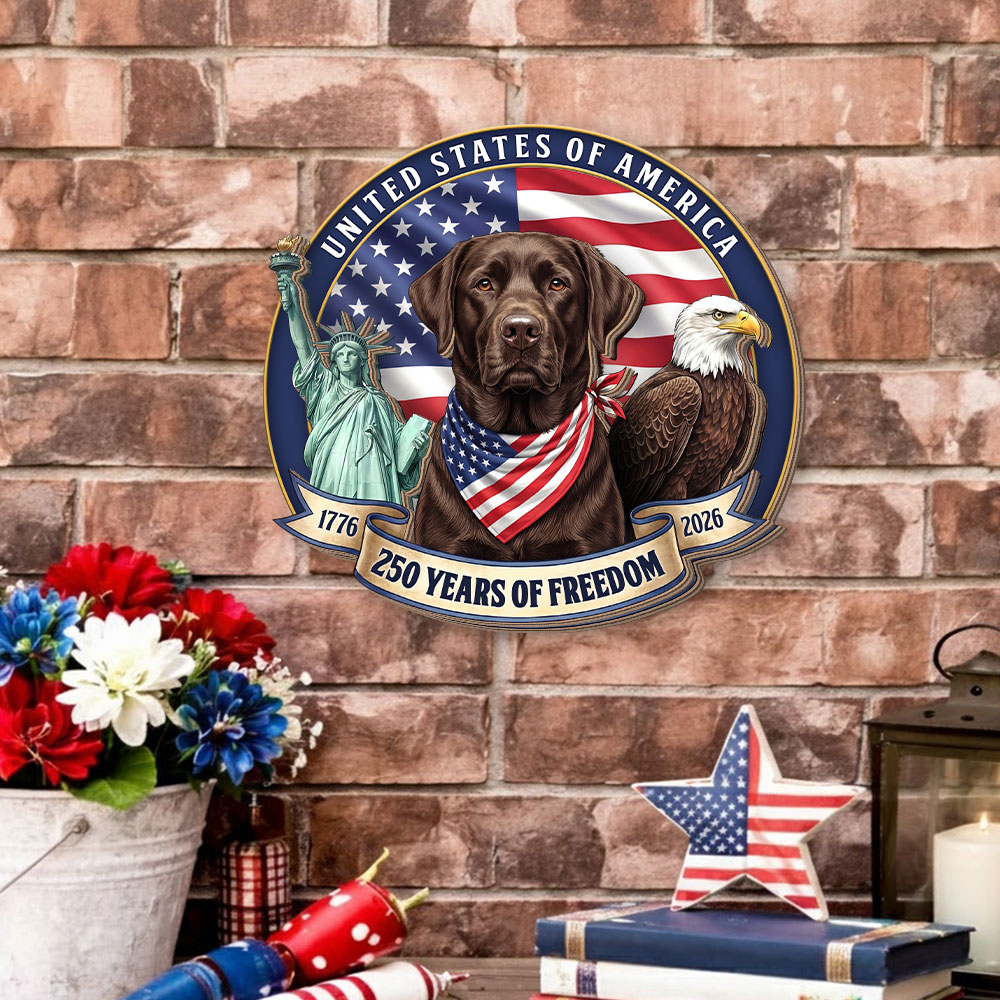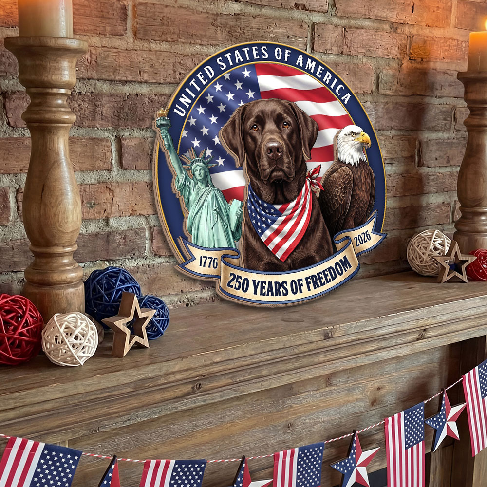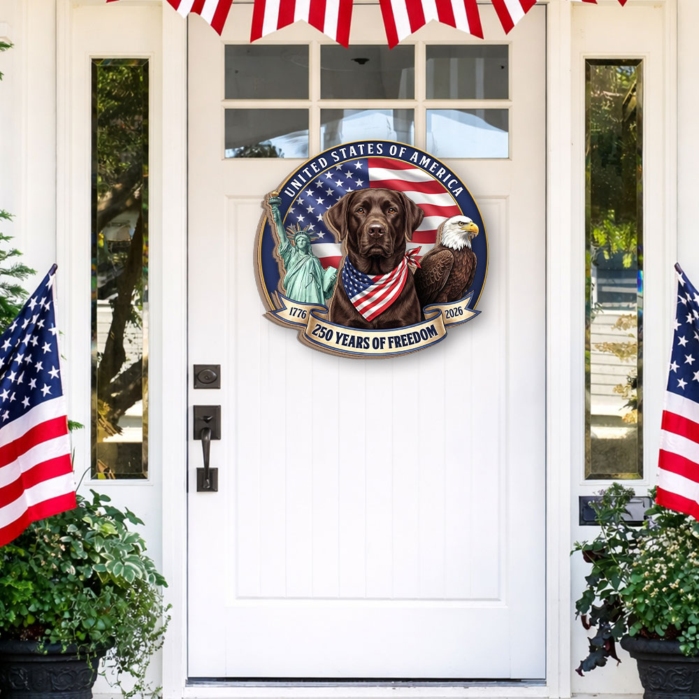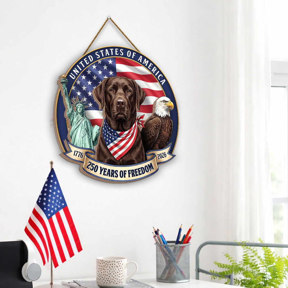 250 Years Labrador Retriever Hanging Sign, Patriotic American Dog Wooden Decor