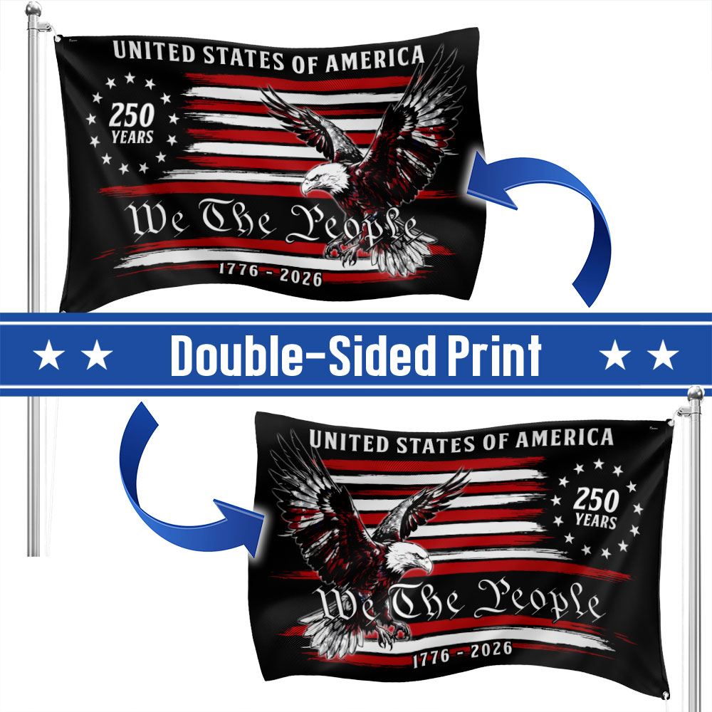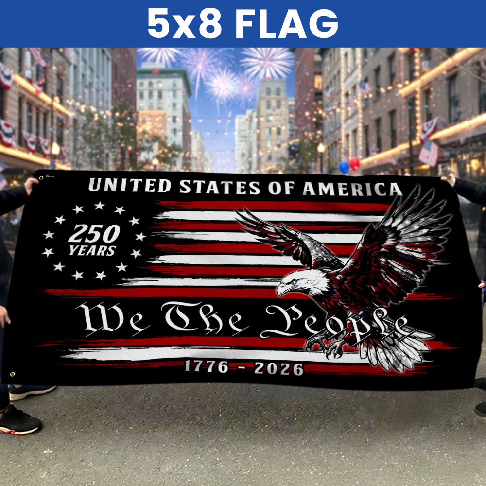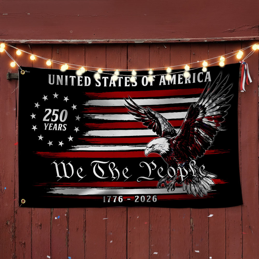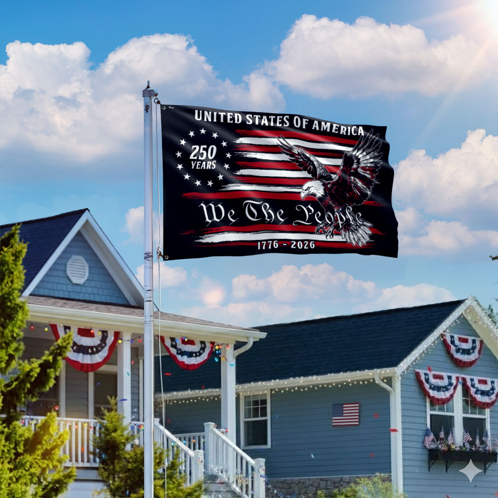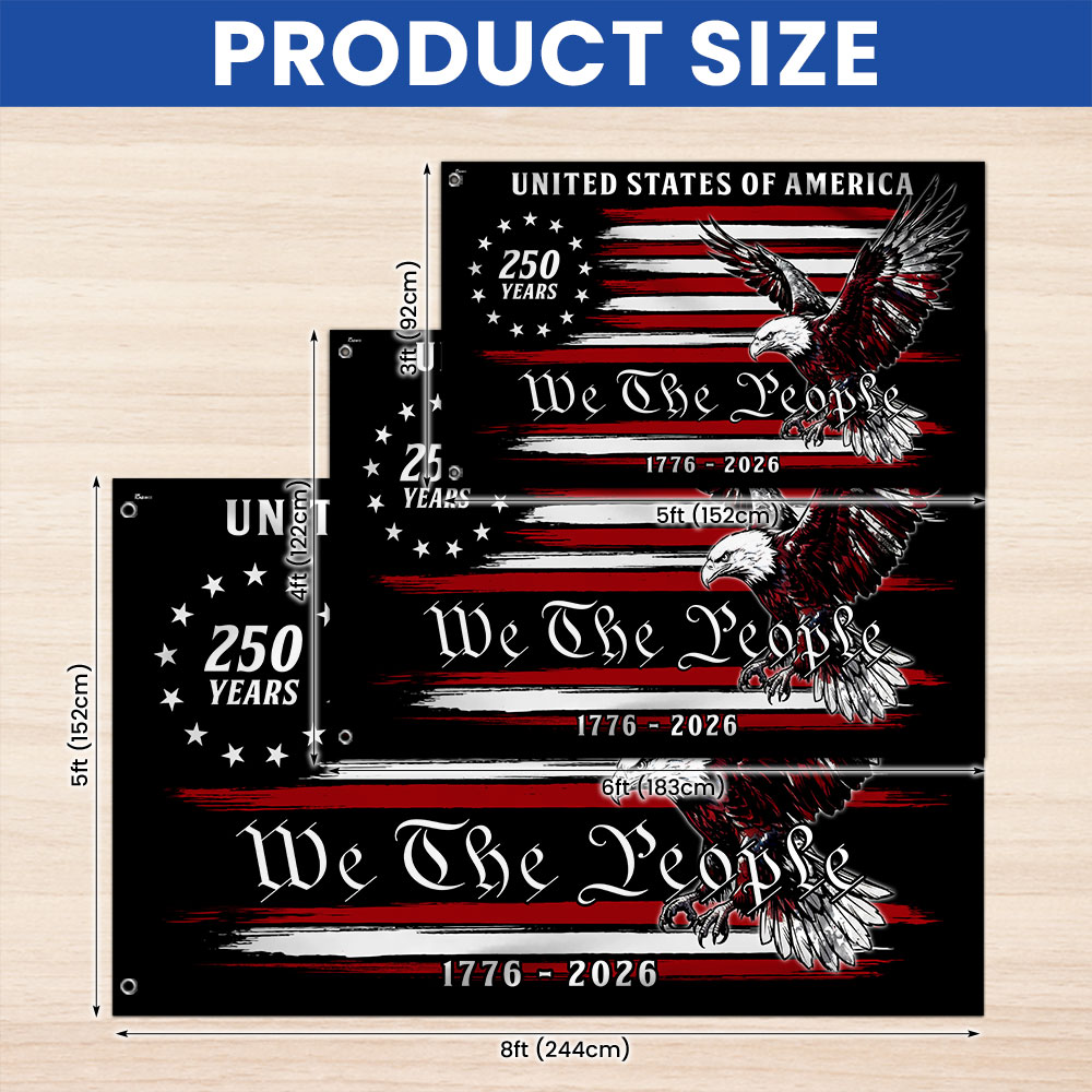 250 Years of America Decor, 1776 2026 We The People Patriotic Grommet Flag