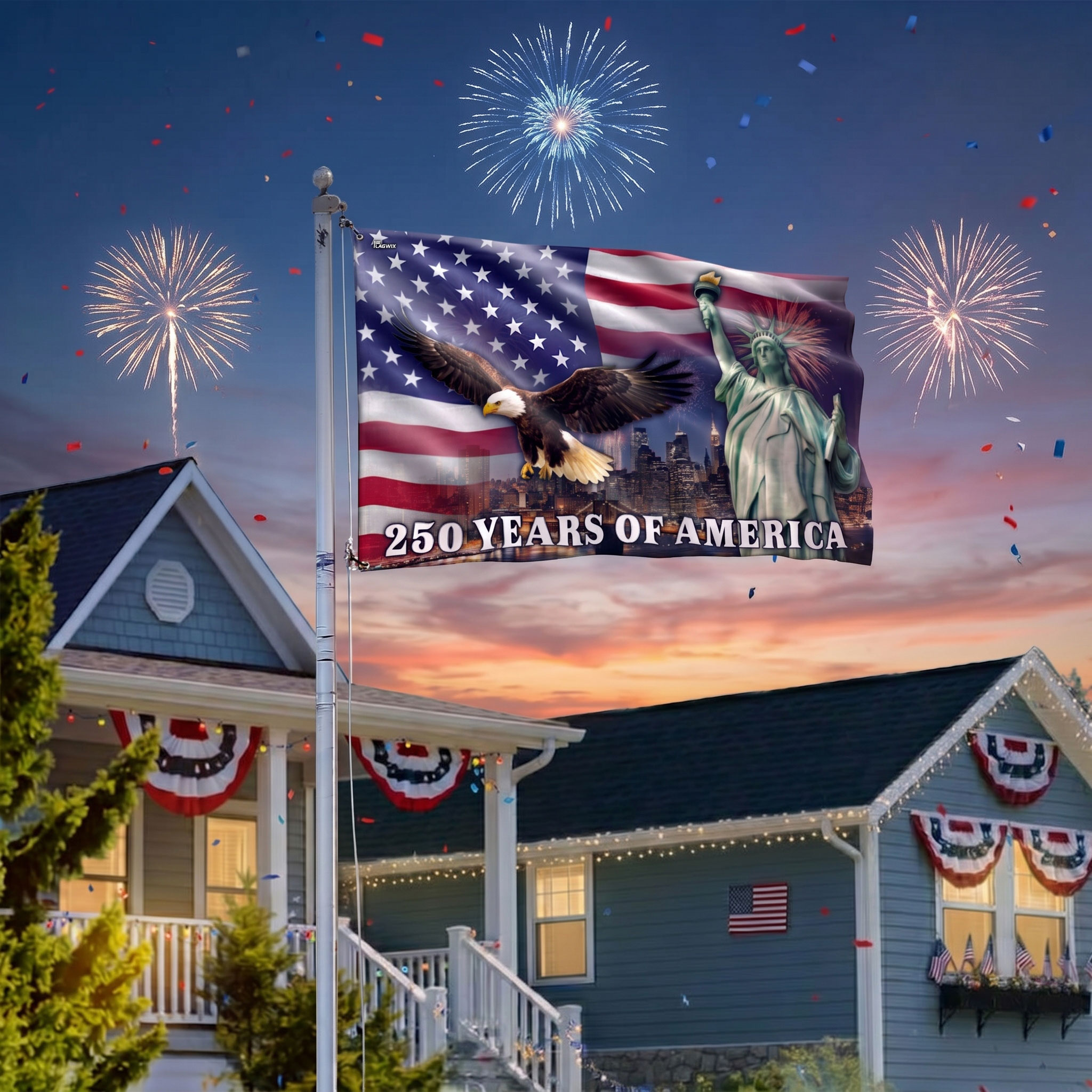 250 Years of America New York City Flag, Eagle with Liberty Grommet Flag