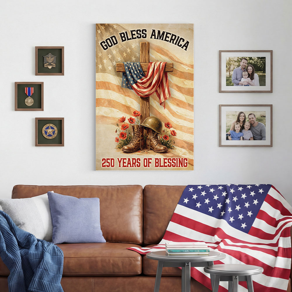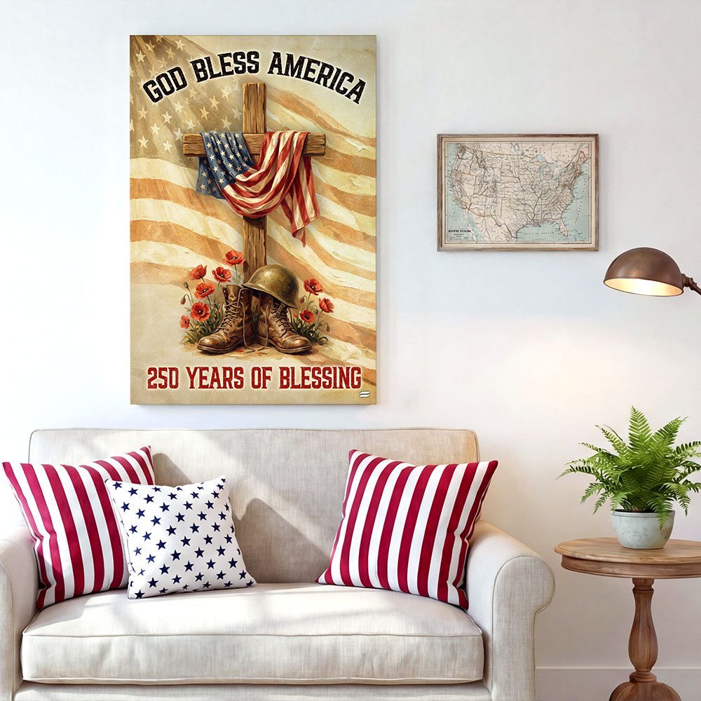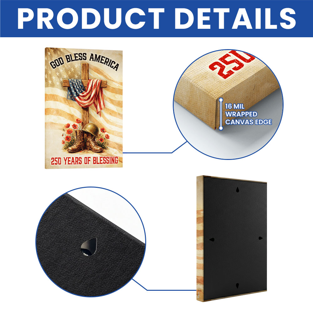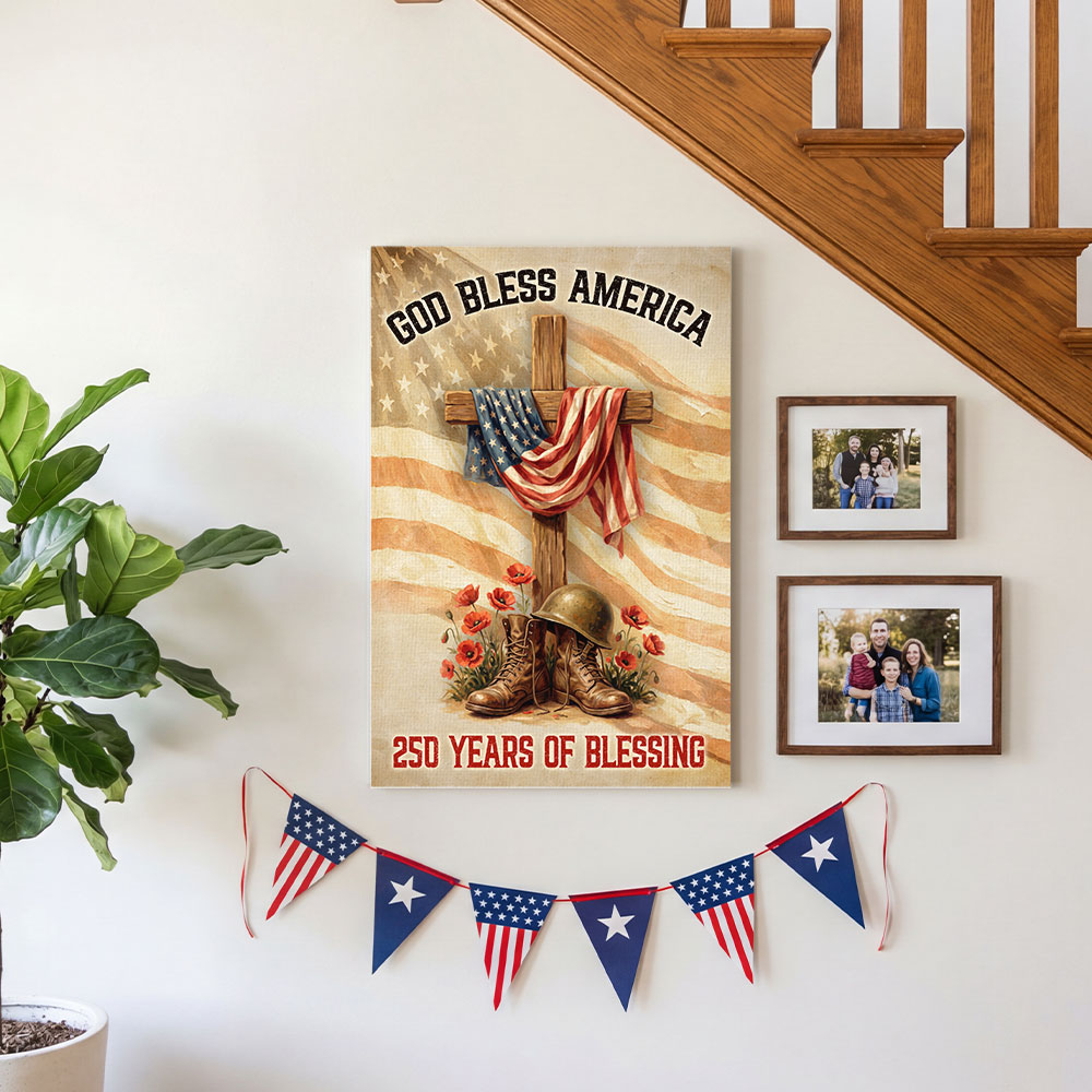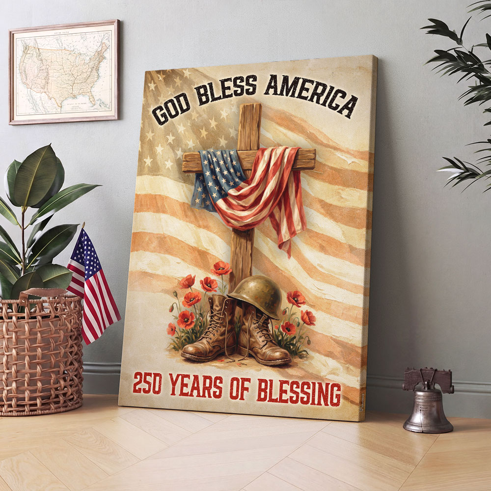 250 Years of Blessing Canvas Wall Art, God Bless America Christian Decor