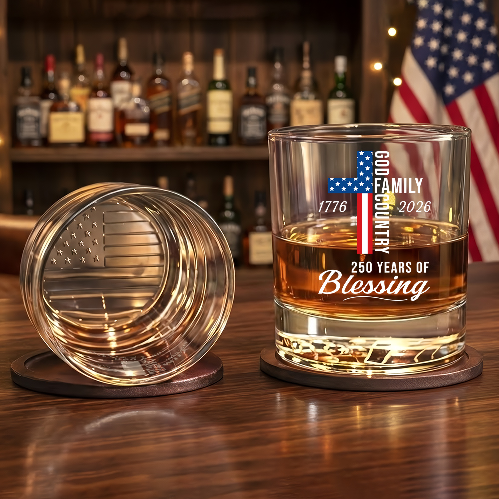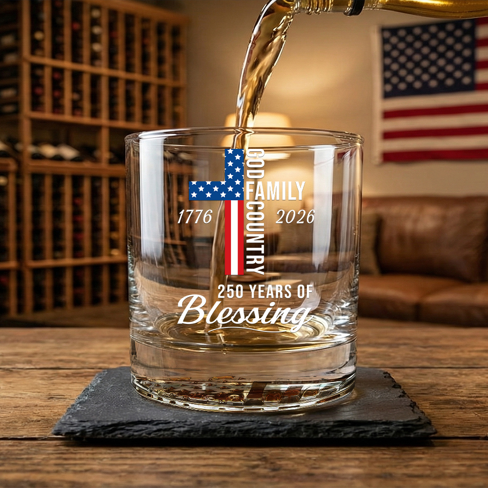 250 Years of Blessing God Family 1776 2026 Printed American Whiskey Glass