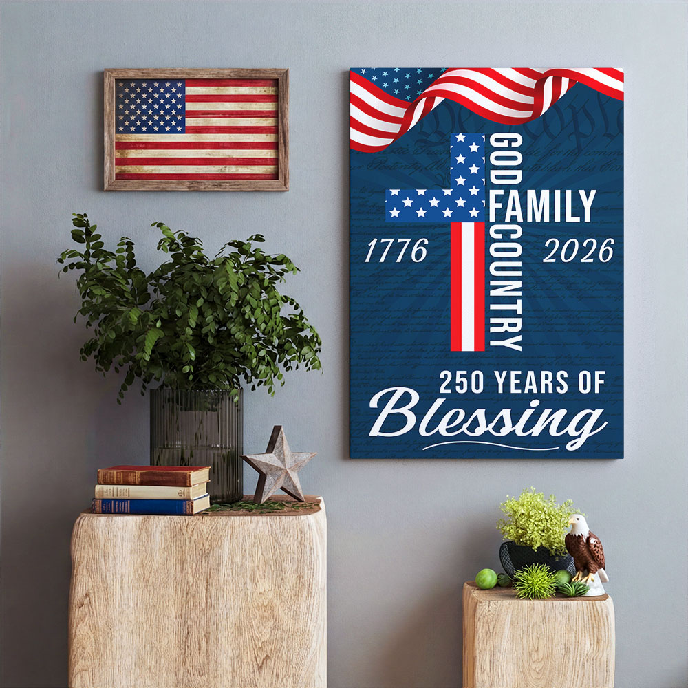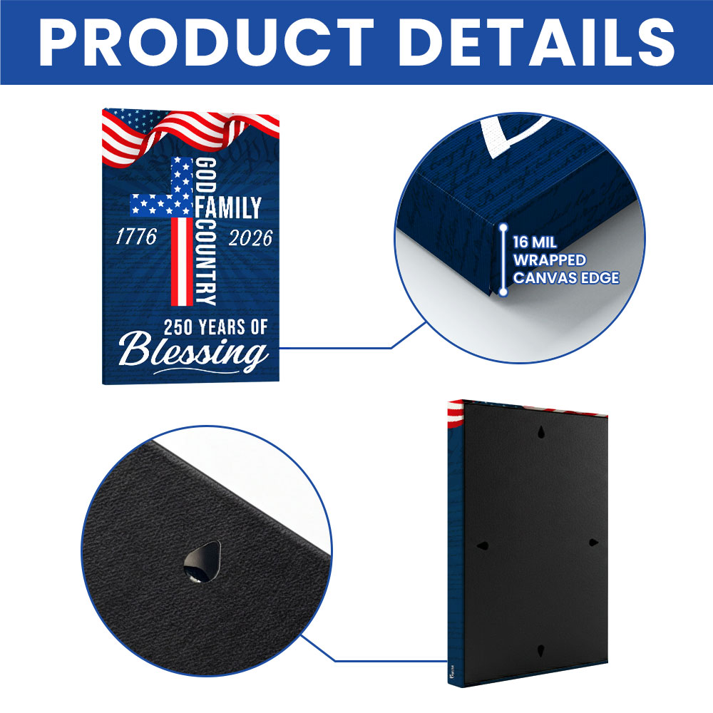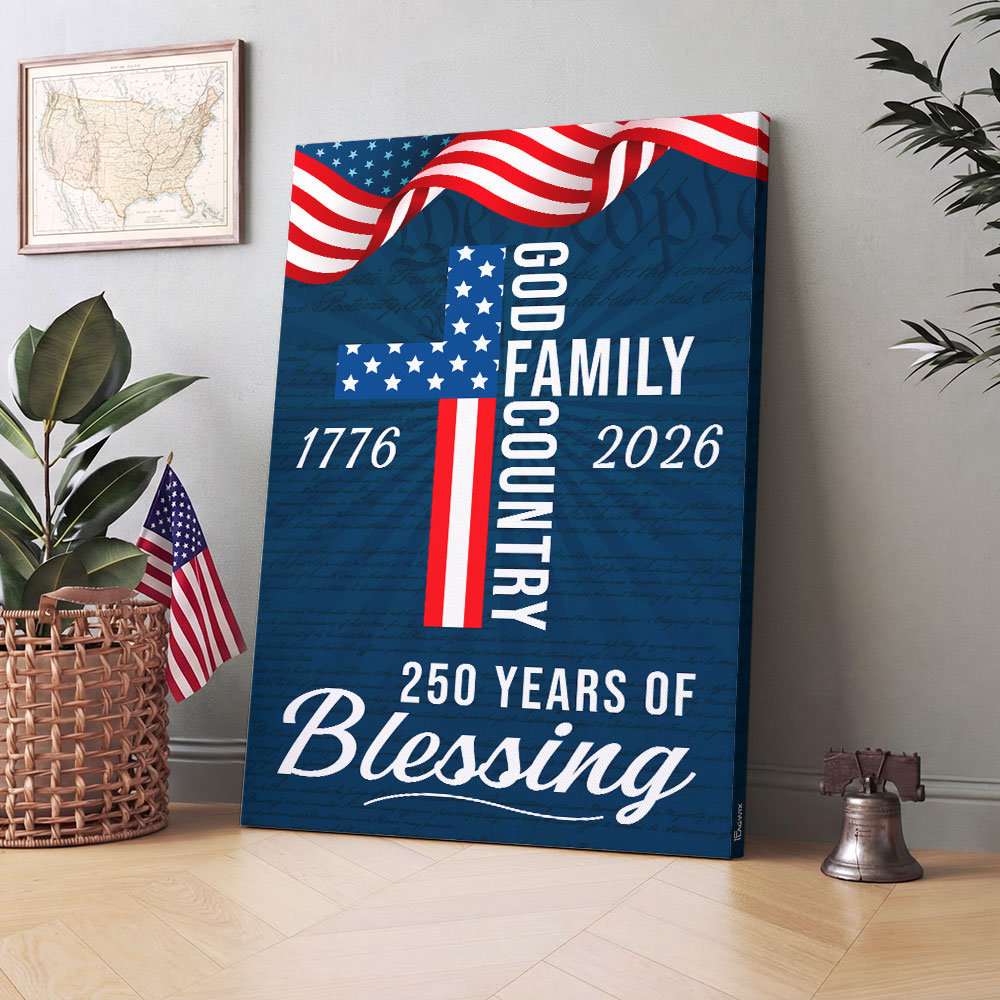 250 Years of Blessing Patriotic Christian with Painting American Flag Canvas Wall Art