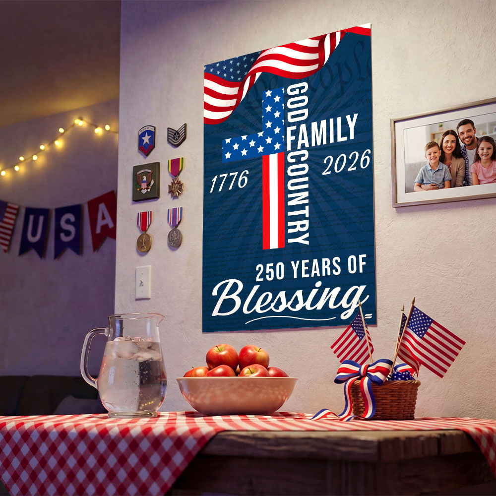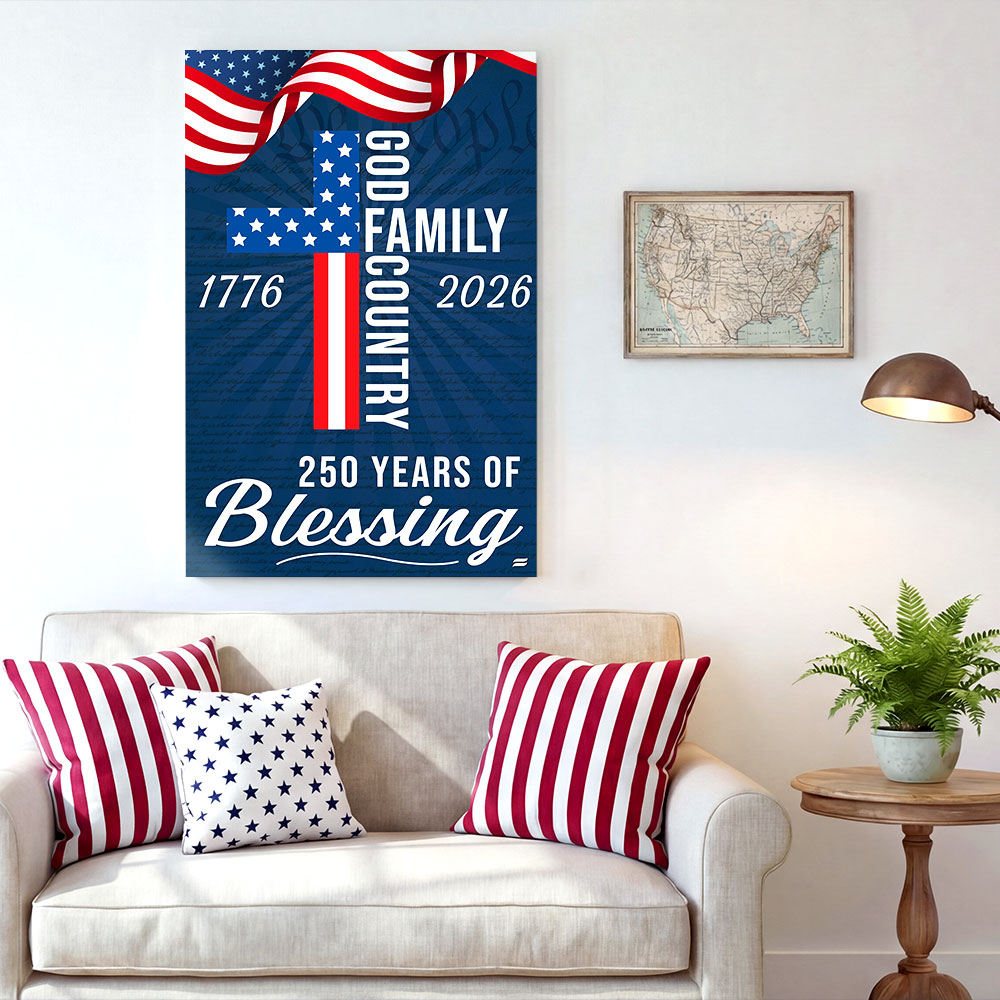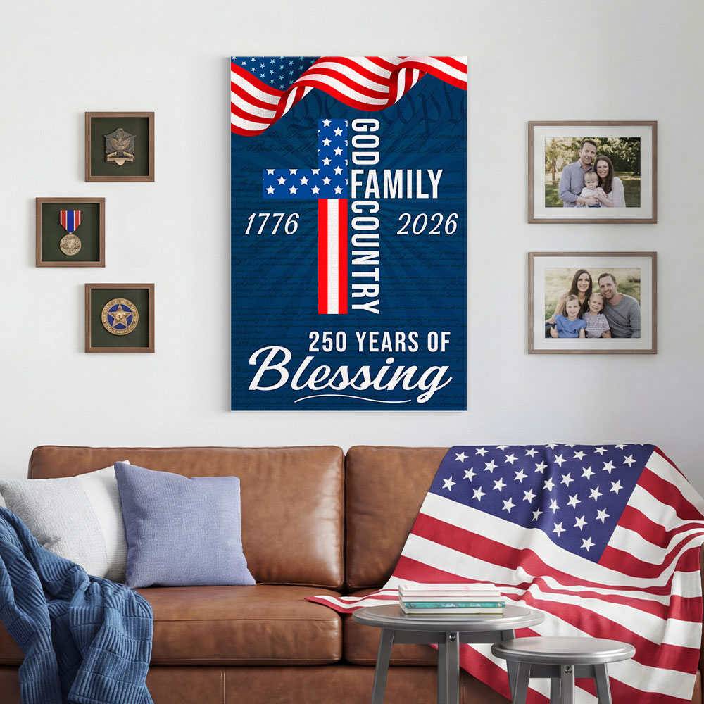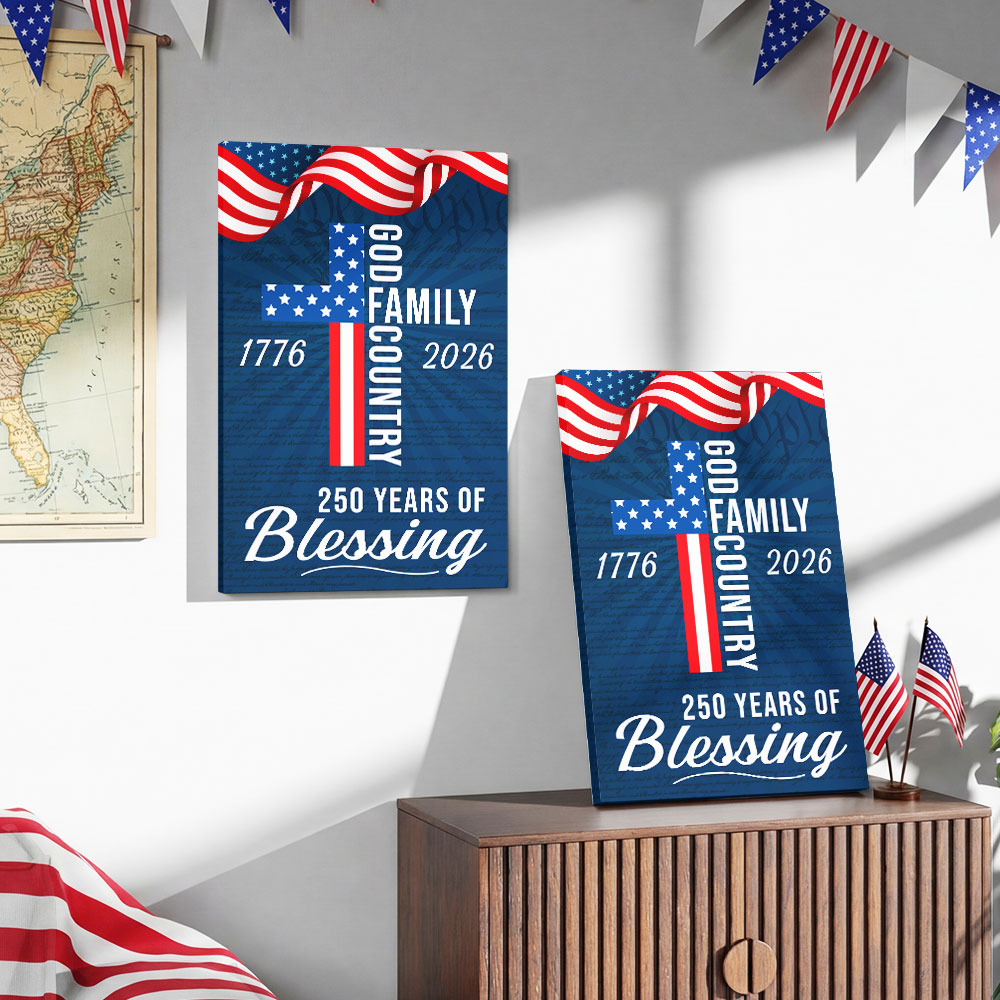 250 Years of Blessing Patriotic Christian with Painting American Flag Canvas Wall Art