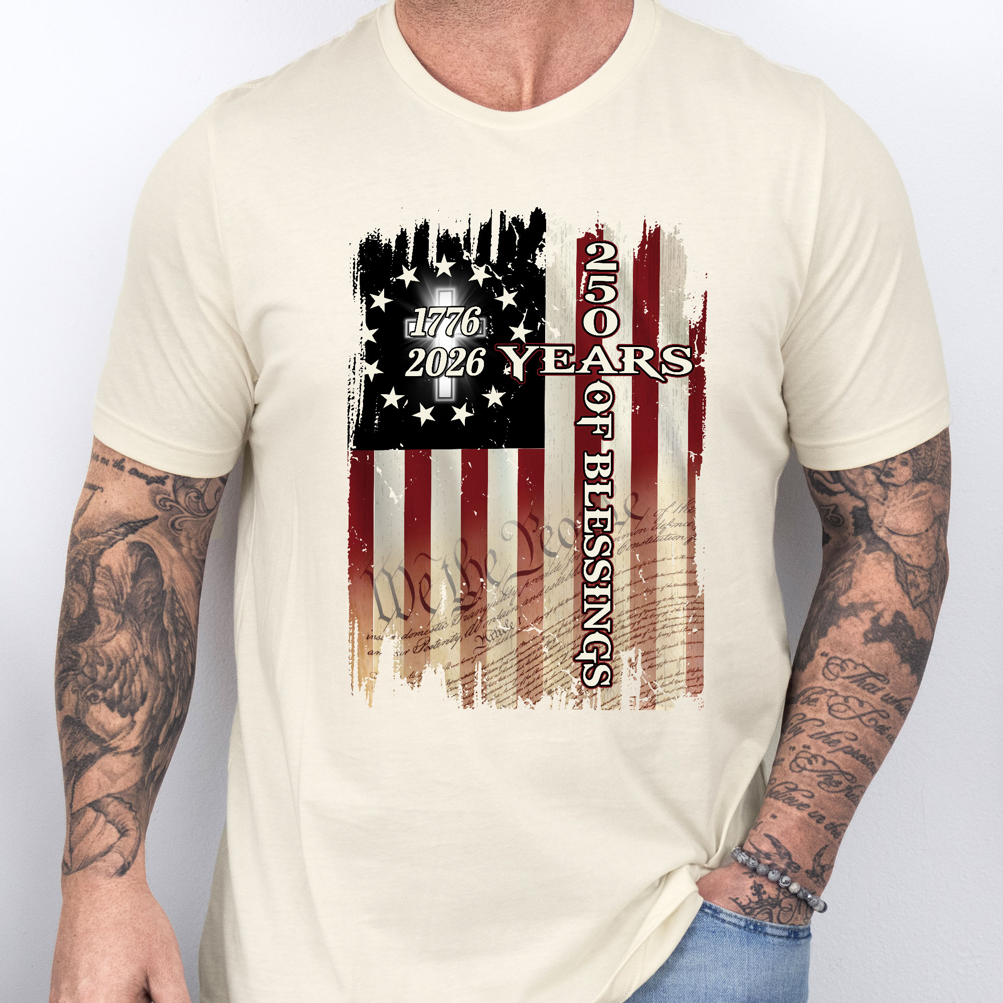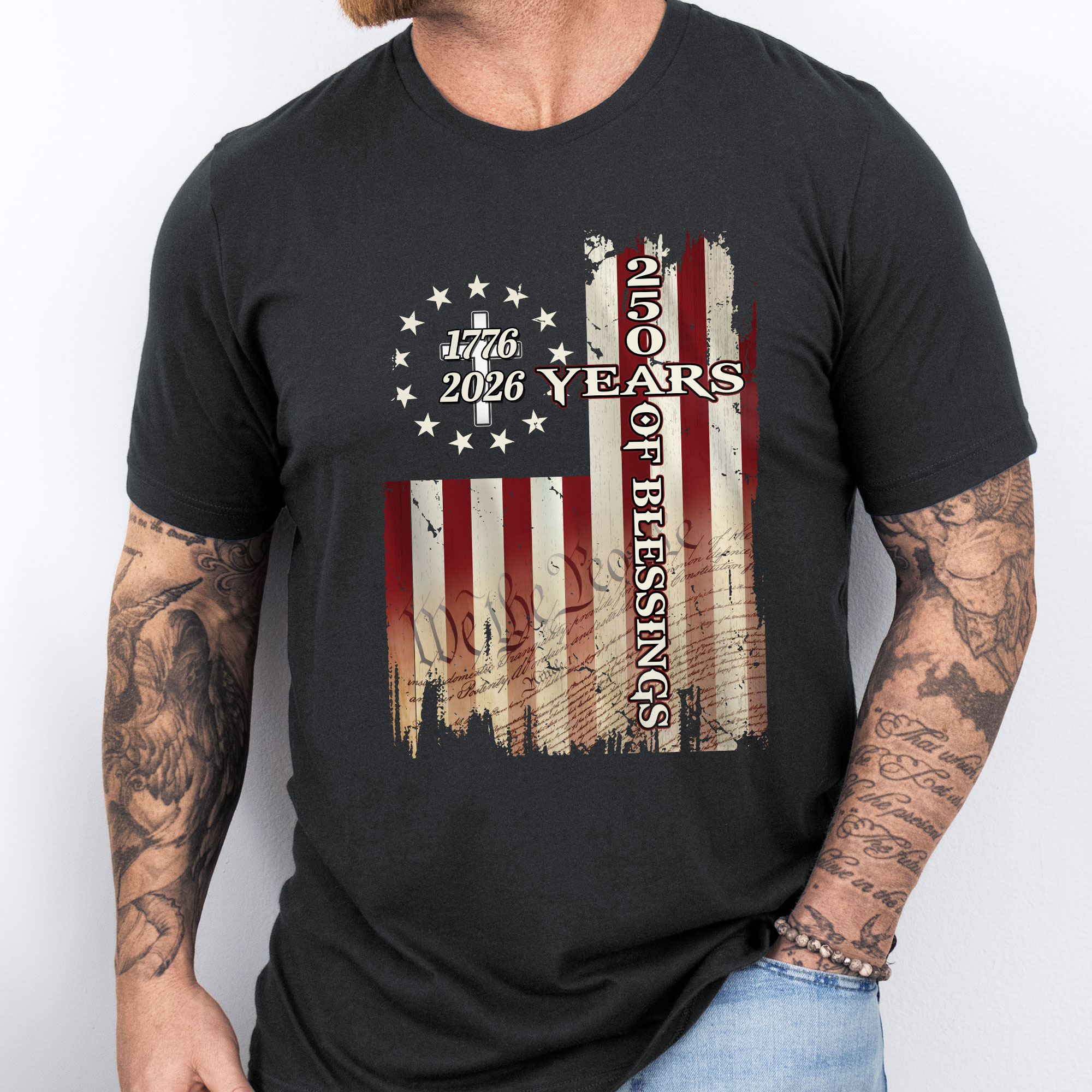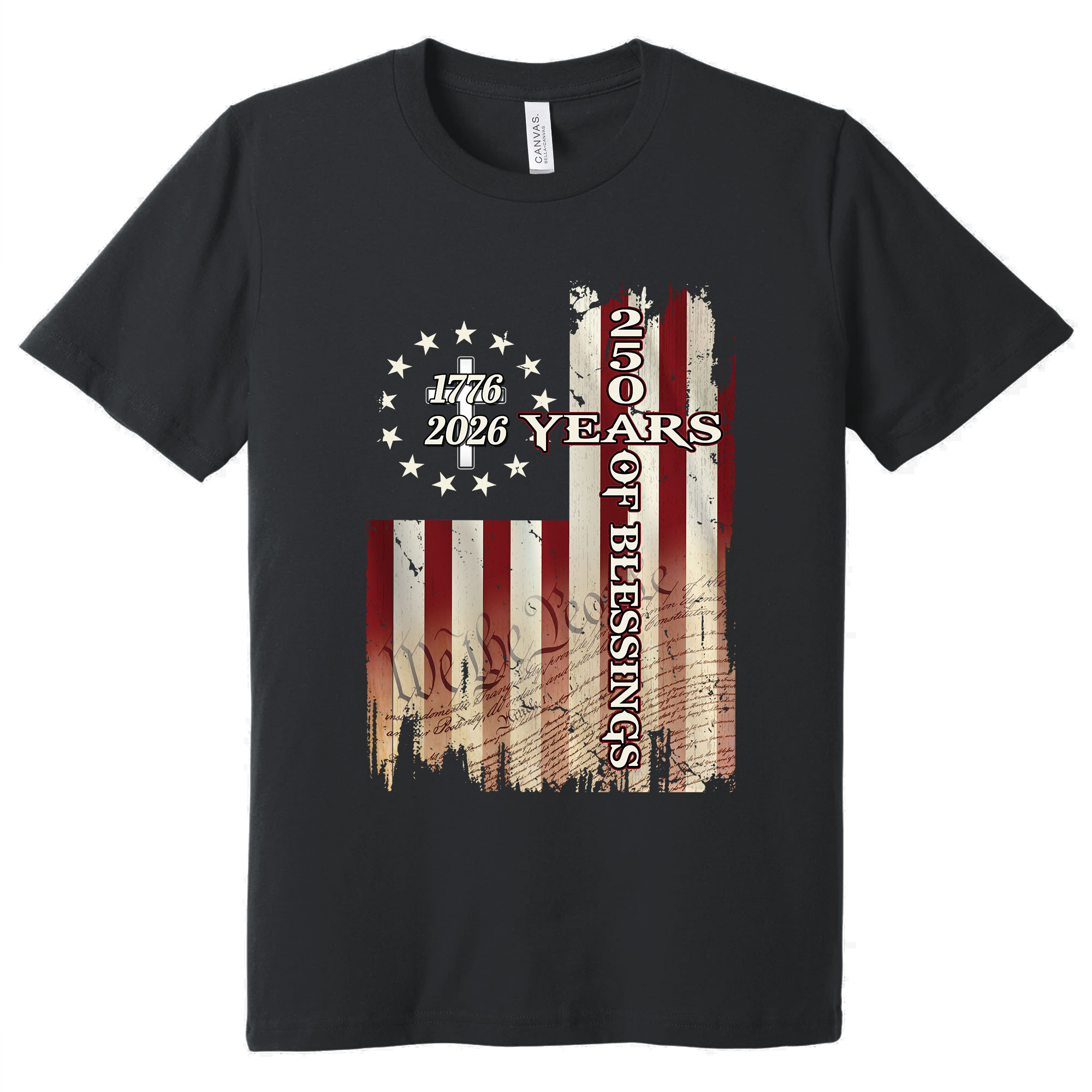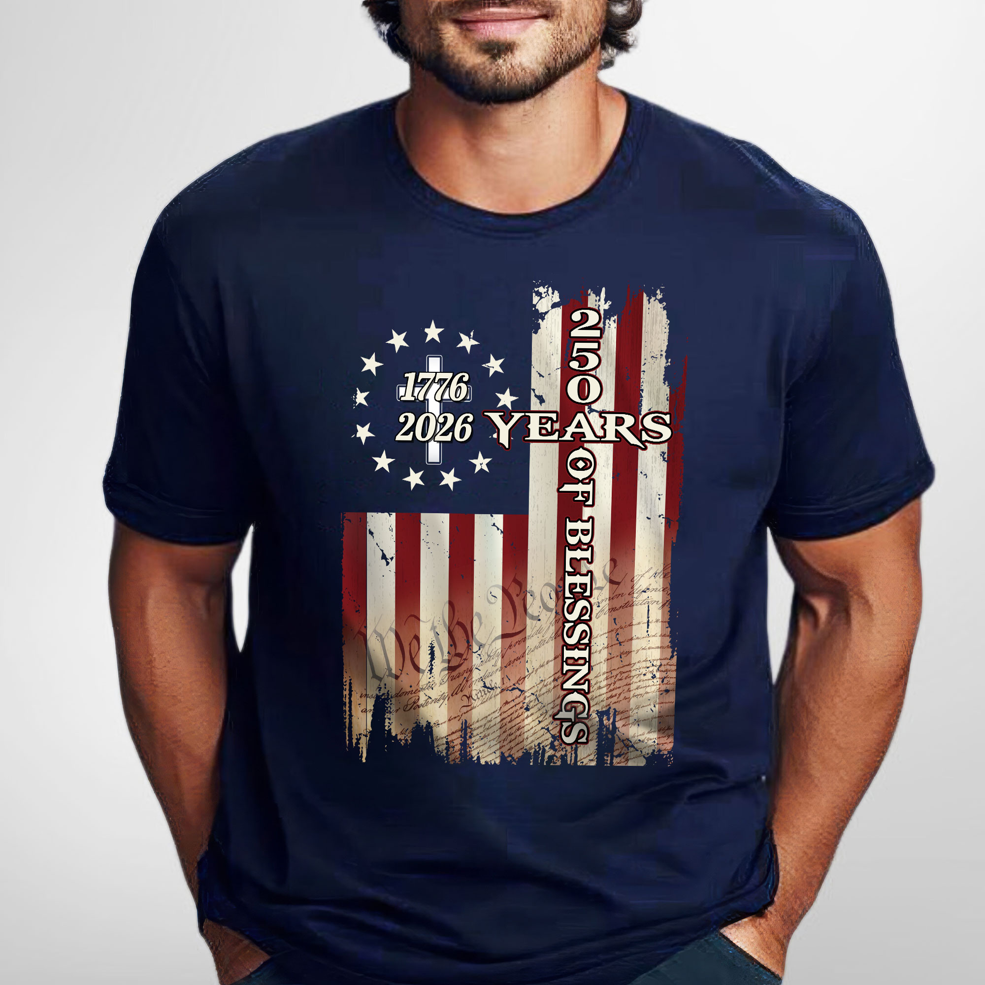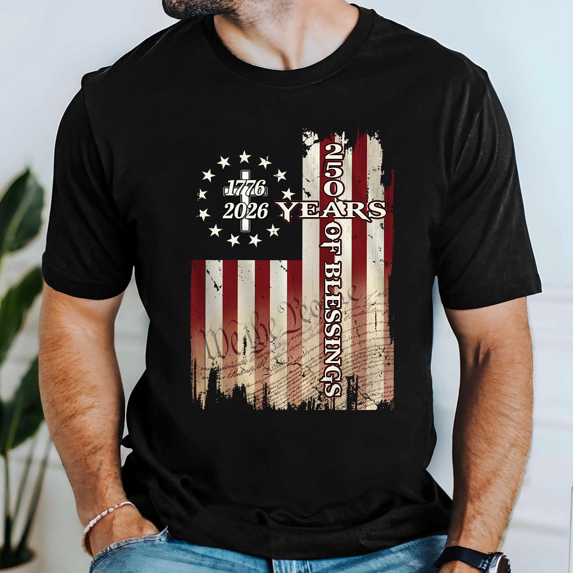 250 Years of Blessings Shirt, 1776 2026 Christian Cross T-shirt