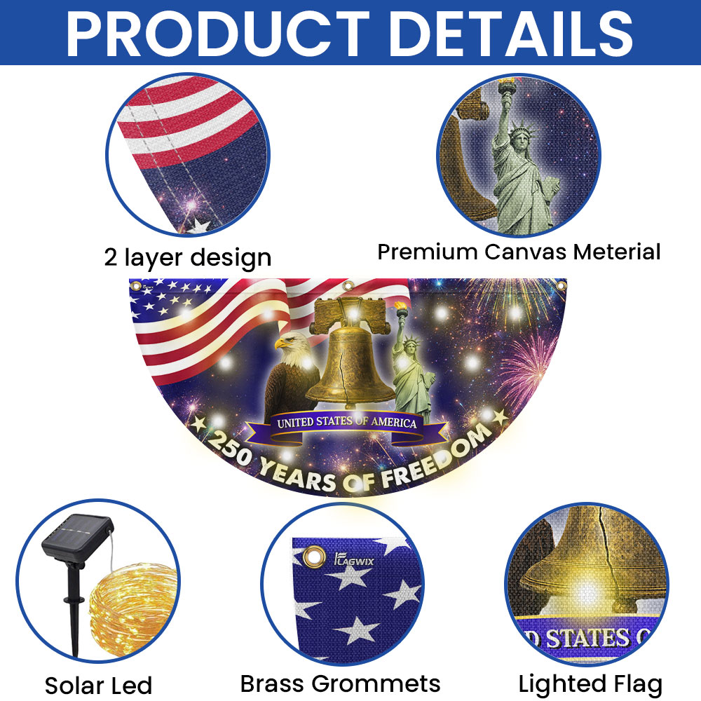 250 Years of Freedom 4th of July Patriotic Liberty Solar Led Fan Flag